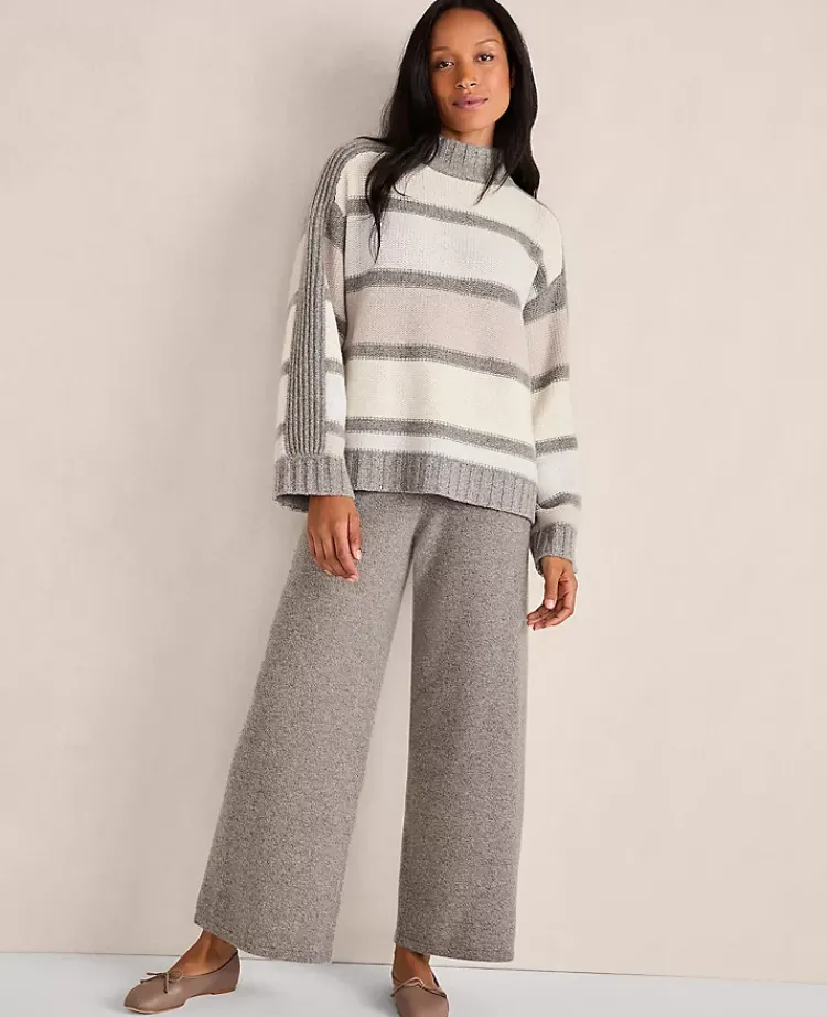 Ann Taylor All Weekend|Haven Well Within Cashmere Striped Mockneck Sweater Fresh Cream