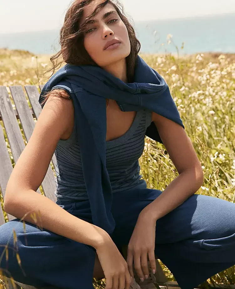 Haven Well Within. A thoughtful collection of lounge, sleep, home and lifestyle essentials — and your trusted resource for all things wellbeing. Meet your new favorite tank from The Effortless Edit Collection. Crafted from organically grown cotton in a delicate stripe pattern, it features wide, bra-friendly straps and a flattering scoop neckline for a go-anywhere look. Sleeveless.