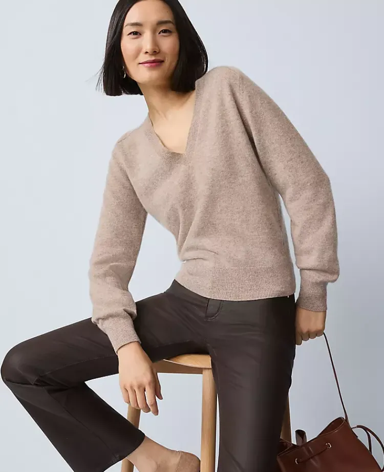 Ann Taylor Cashmere|Sweaters|Cashmere V-Neck Sweater Mushroom Melange