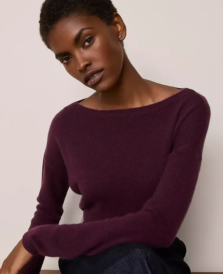 Ann Taylor Cashmere|Sweaters|Studio Collection Cashmere Off-The-Shoulder Sweater Deep Cabernet