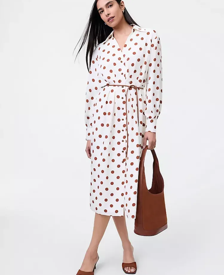 Ann Taylor Dresses|Dotted Satin Midi Shirtdress Tortoise Shell