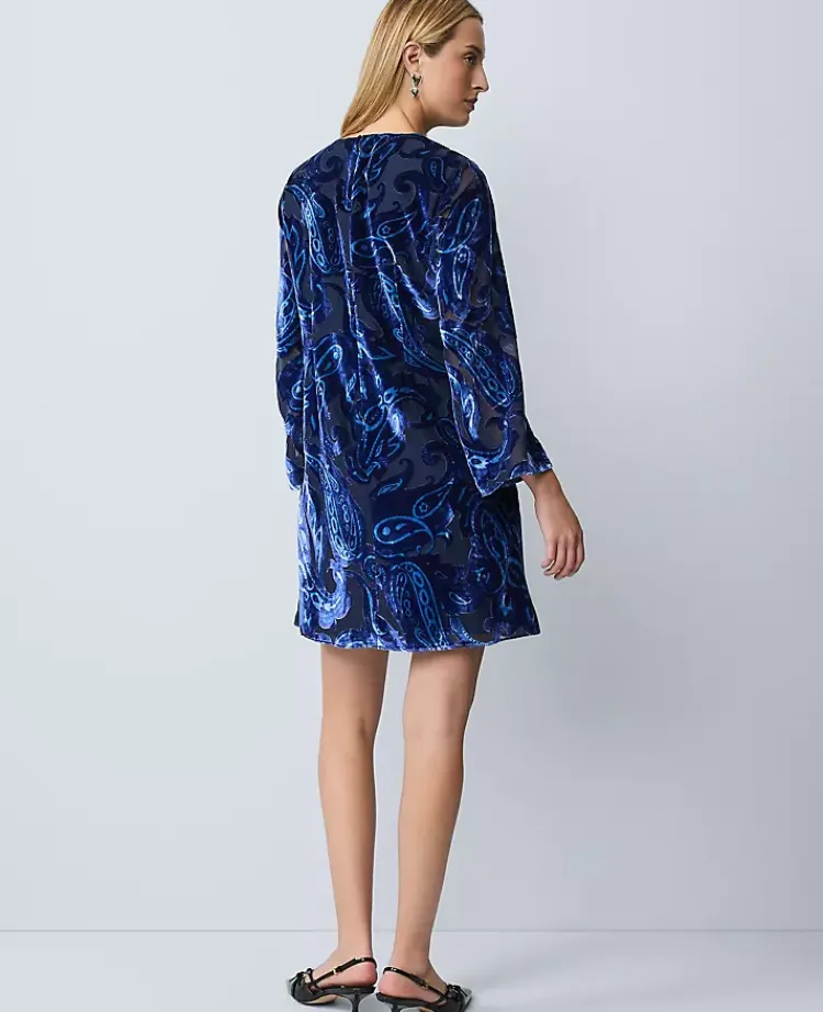 Ann Taylor Dresses|Studio Collection Velvet Paisley Shift Dress Night Sky