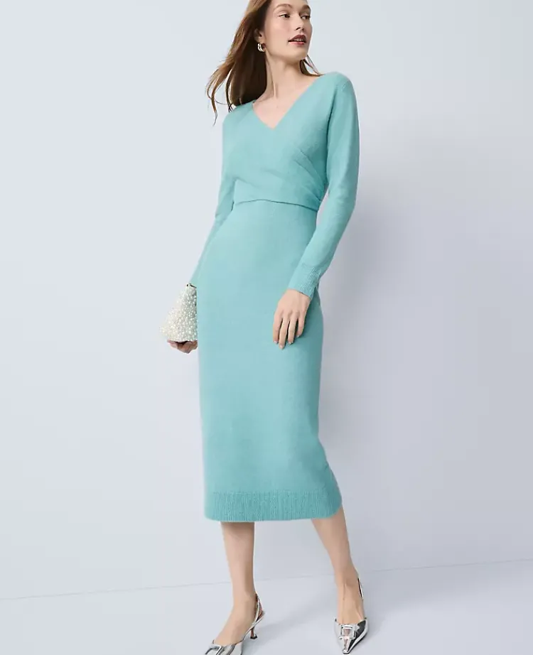 Ann Taylor Dresses|Sweaters|Wrap Effect Sweater Sheath Dress Lakeside View