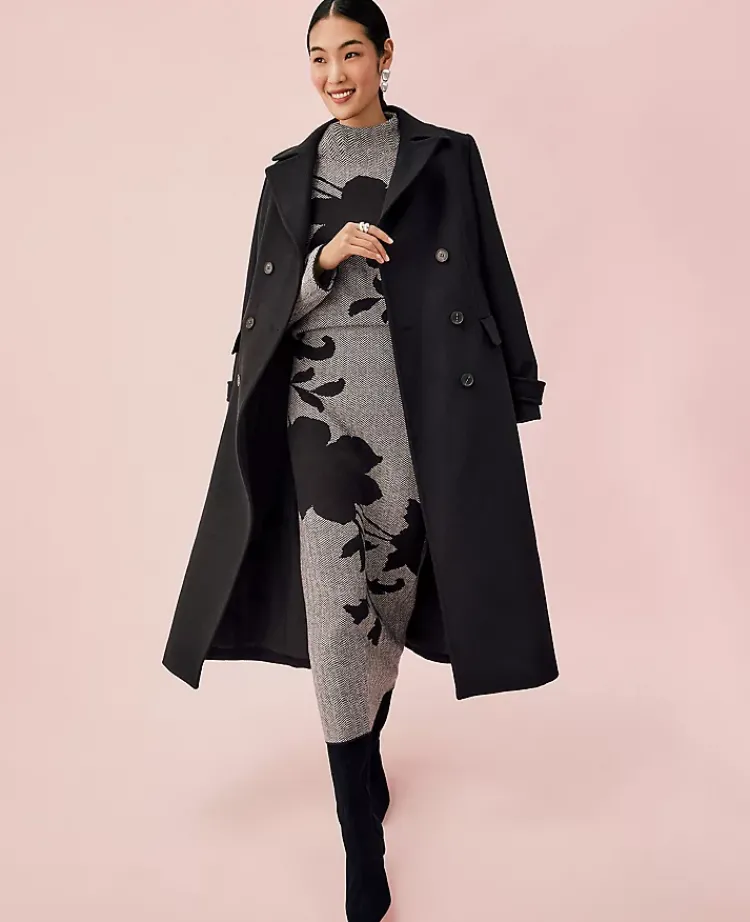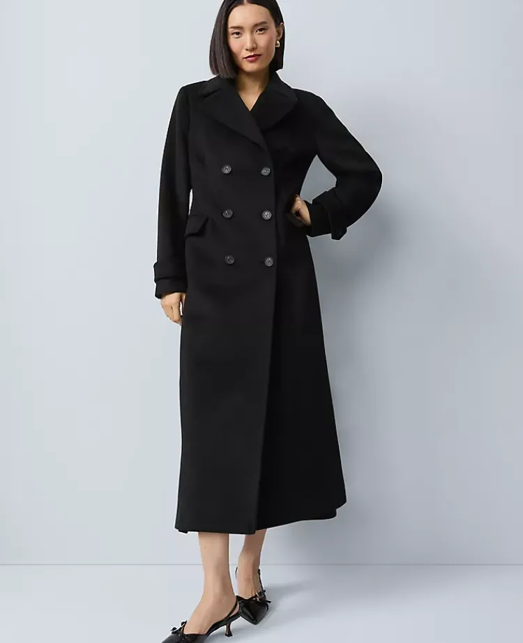 Ann Taylor Jackets And Blazers|Fitted Double Breasted Long Coat Black