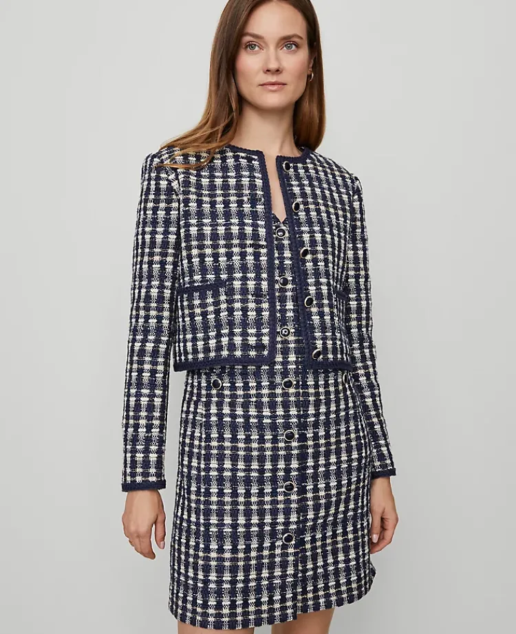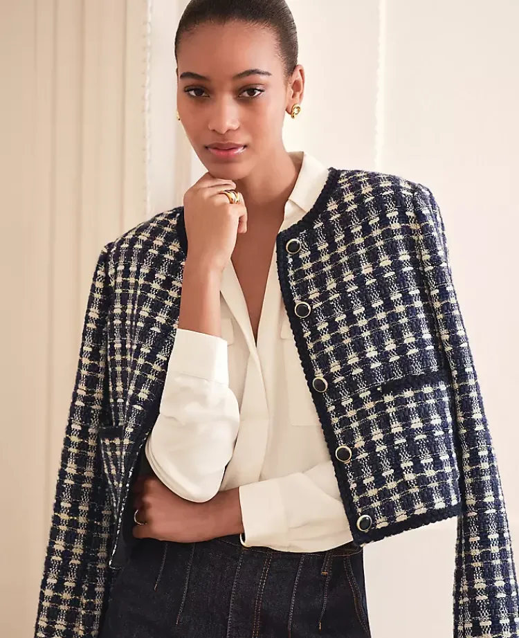 Ann Taylor Jackets And Blazers|Petite Jackets And Blazers|Petite Tweed Patch Pocket Jacket Navy/White Combo