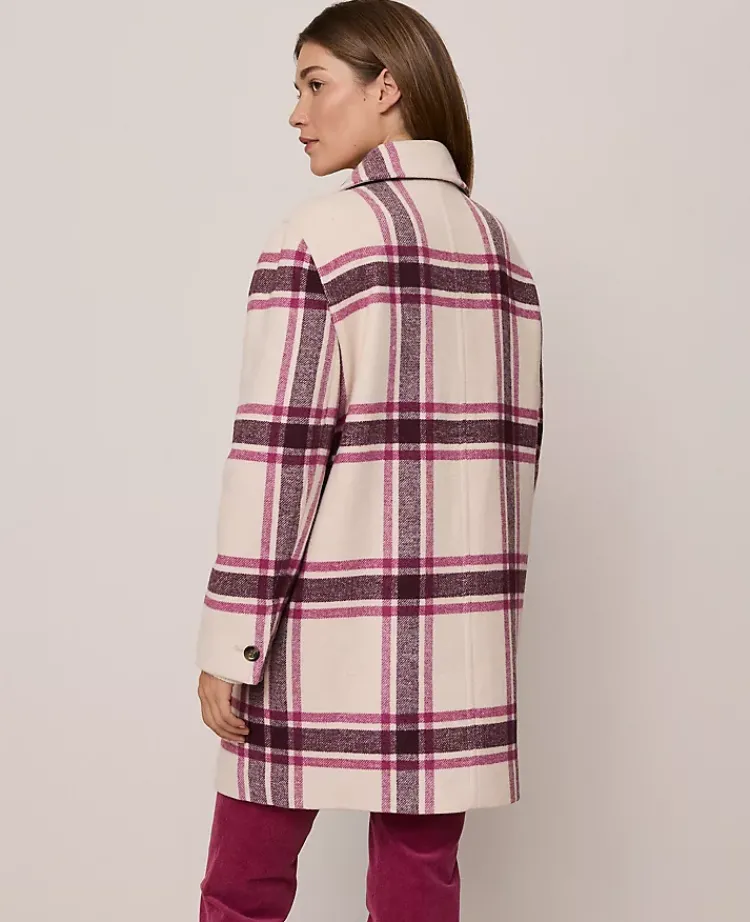 Ann Taylor Jackets And Blazers|Petite Jackets And Blazers|Petite Weekend Collection Plaid Cocoon Coat Seedpearl