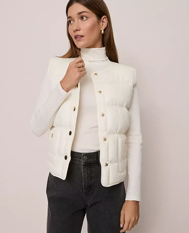 Ann Taylor Jackets And Blazers|Petite Jackets And Blazers|Petite Weekend Collection Quilted Vest Winter White