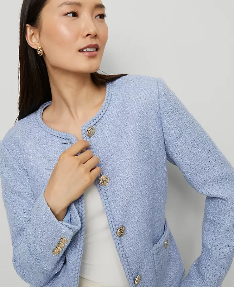 Ann Taylor Jackets And Blazers|Petite Tweed Belted Jacket Placid Blue