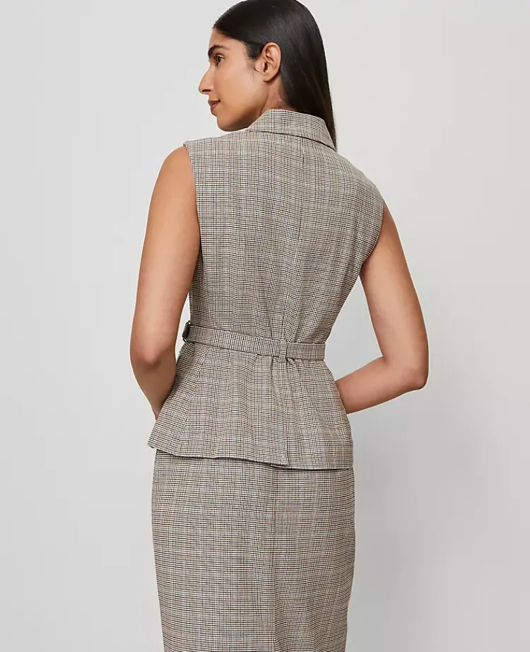 Ann Taylor Jackets And Blazers|Suits|Belted Vest In Plaid Copper/Cream Multi