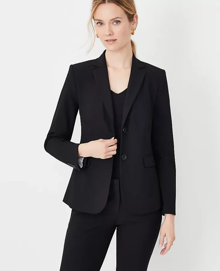Ann Taylor Jackets And Blazers|Suits|The Notched Two Button Blazer In Seasonless Stretch – Curvy Fit Core Black