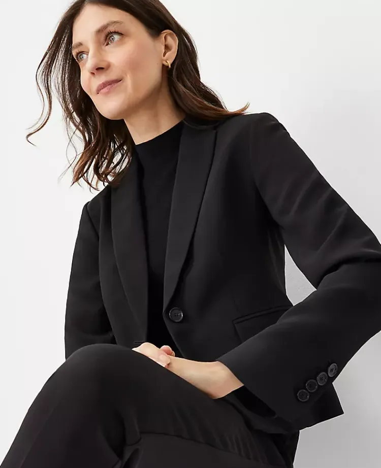 Ann Taylor Jackets And Blazers|Suits|The Shorter One Button Blazer In Fluid Crepe Black