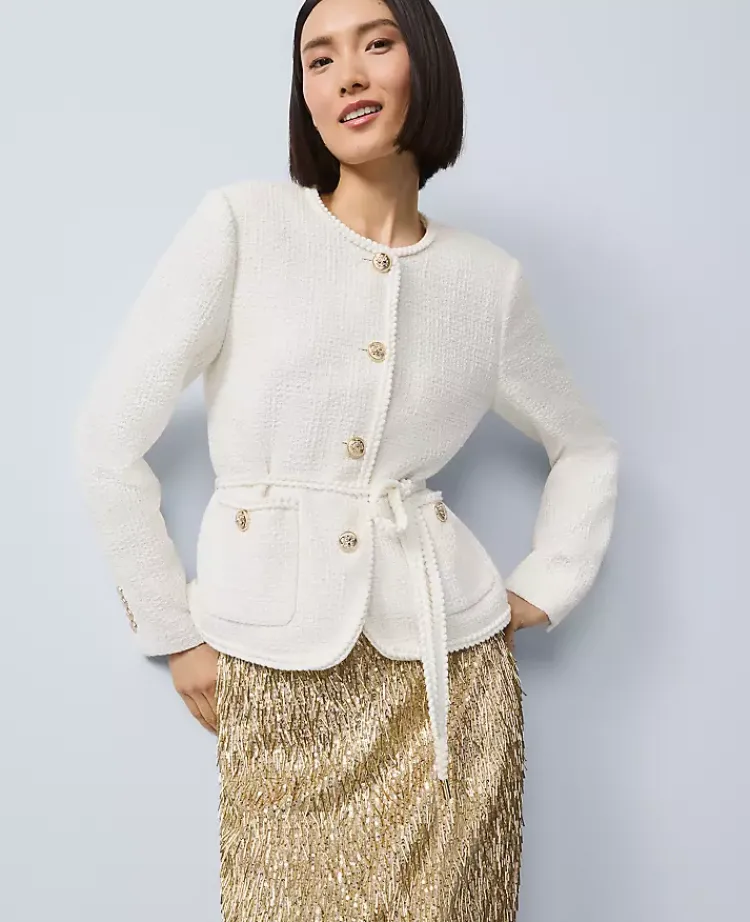 Ann Taylor Jackets And Blazers|Tweed Belted Jacket Winter White