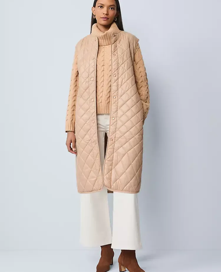 Ann Taylor Jackets And Blazers|Weekend Jackets|Weekend Collection Quilted Long Puffer Vest Cafe Au Lait