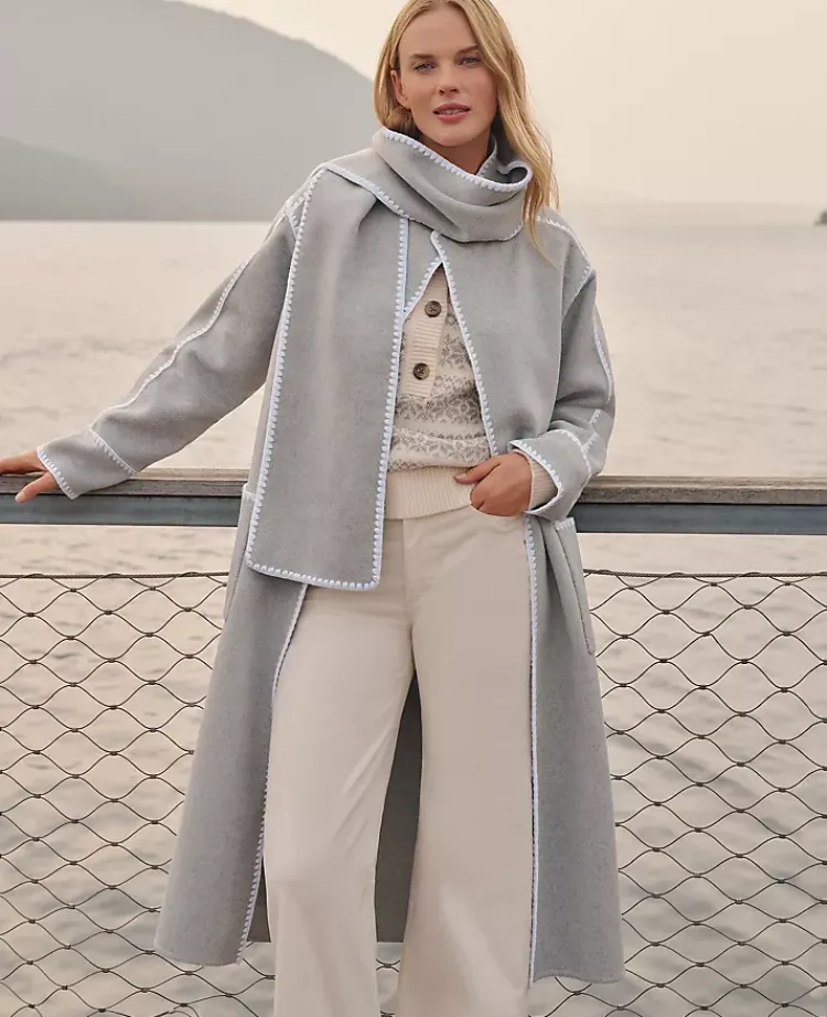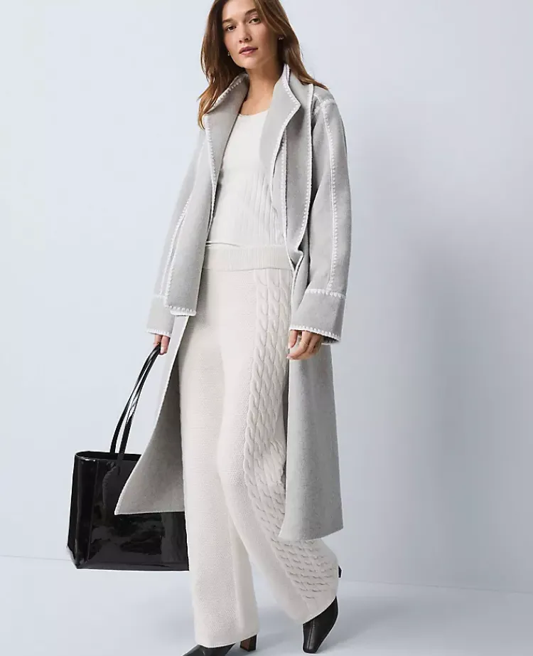 Ann Taylor Jackets And Blazers|Weekend Jackets|Weekend Collection Wrap Scarf Coat Medium Light Heather Grey