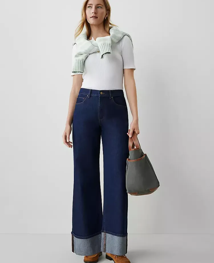 Ann Taylor Jeans|The Cuffed Palazzo Jean Classic Rinse Wash