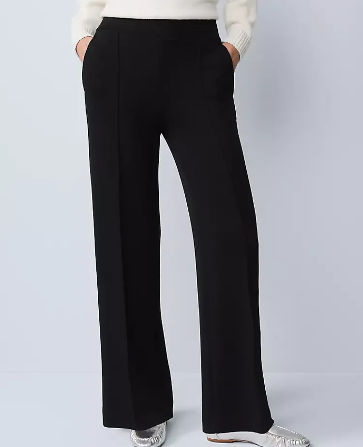 Ann Taylor Pants|Petite Pants|Petite Weekend Collection Easy Wide Leg Pant In Scuba Black