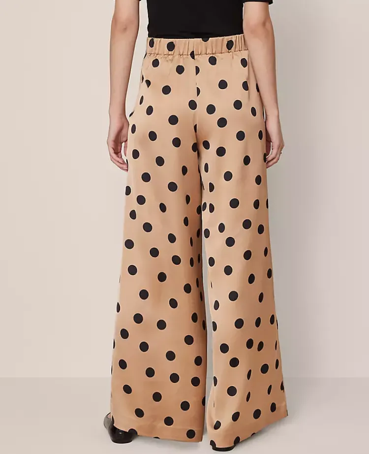 Ann Taylor Pants|Petite Pants|The Petite Dotted Dramatic Wide-Leg Satin Pant Cafe Au Lait