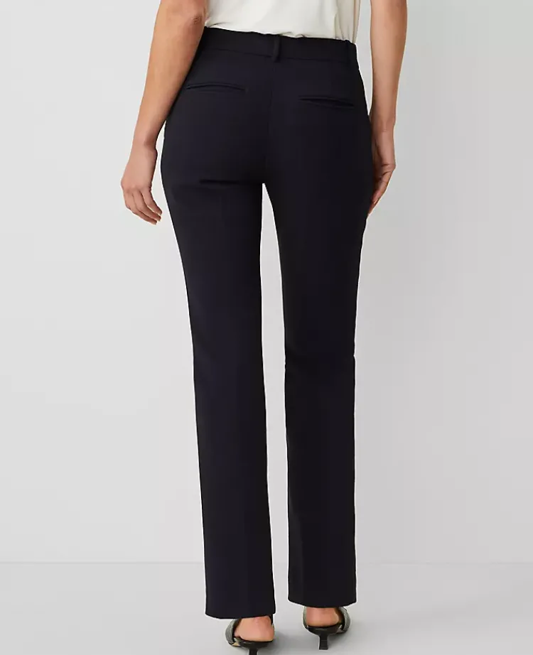 The classic lean fit of this straight-leg pant gives it a chic, structured silhouette. Front zip with hook-and-bar closure. Belt loops. Front off-seam pockets. Back besom pockets.