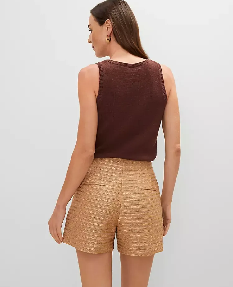 Ann Taylor Pants|Side Zip Shorts In Metallic Tweed Karat Gold Metallic