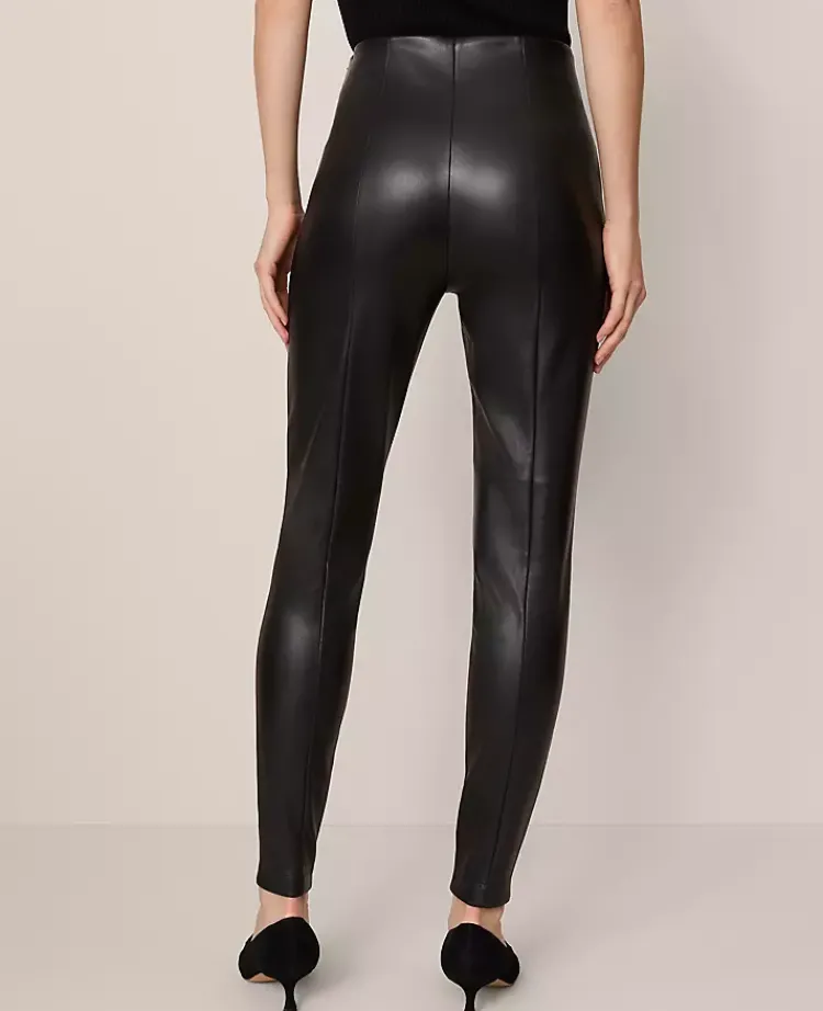 Ann Taylor Pants|The Seamed Button Legging In Faux Leather Black