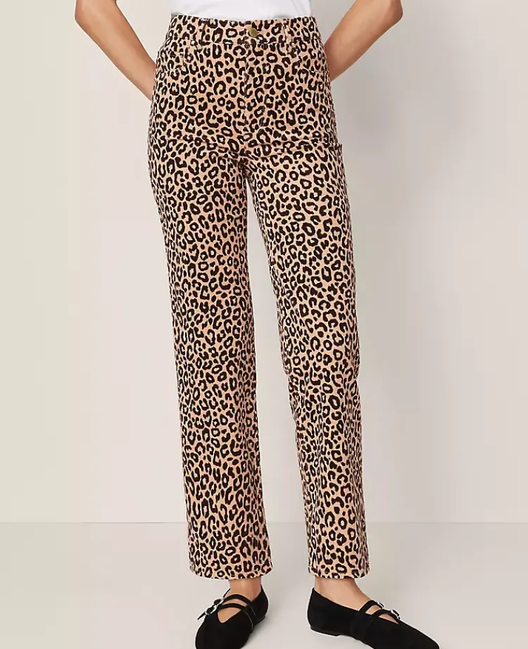 Discover Ann Taylor Weekend. Effortlessly polished pieces for wherever your plans take you. Done in a bold animal print, our high-rise, straight-leg pants are at once chic and statement-making. Front zip with button closure. Belt loops. Classic five-pocket styling.