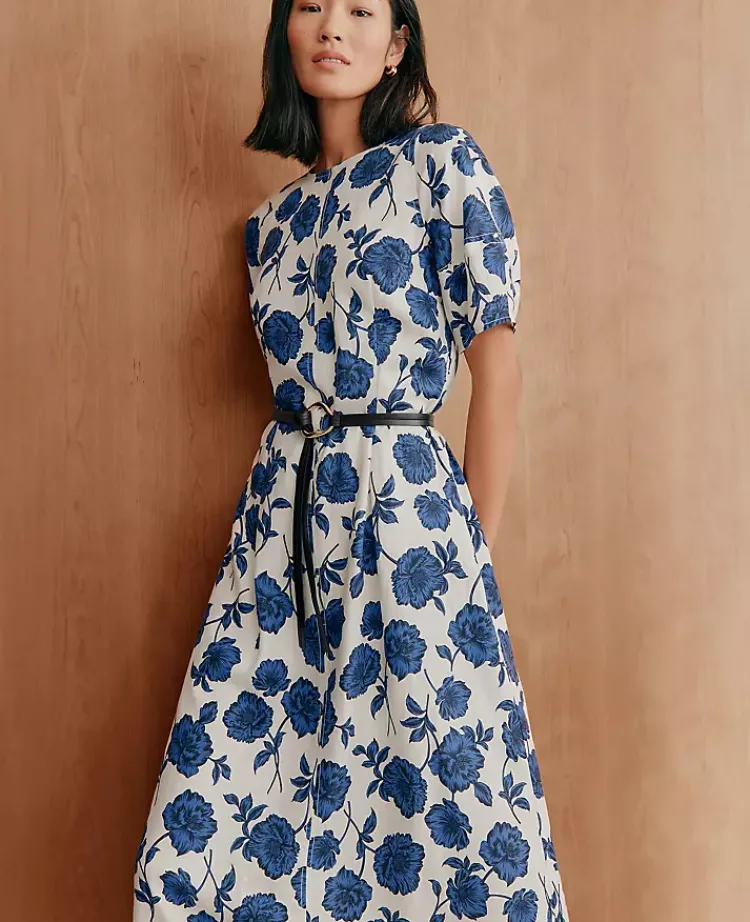 Ann Taylor Petite Dresses|Petite Floral Blend Midi Dress Electric Periwinkle