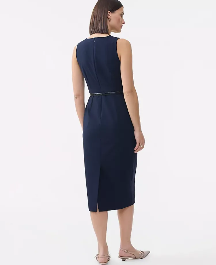 Ann Taylor Petite Dresses|Petite Suits|The Petite Belted Crew Neck Sheath Dress Deep Navy Sky