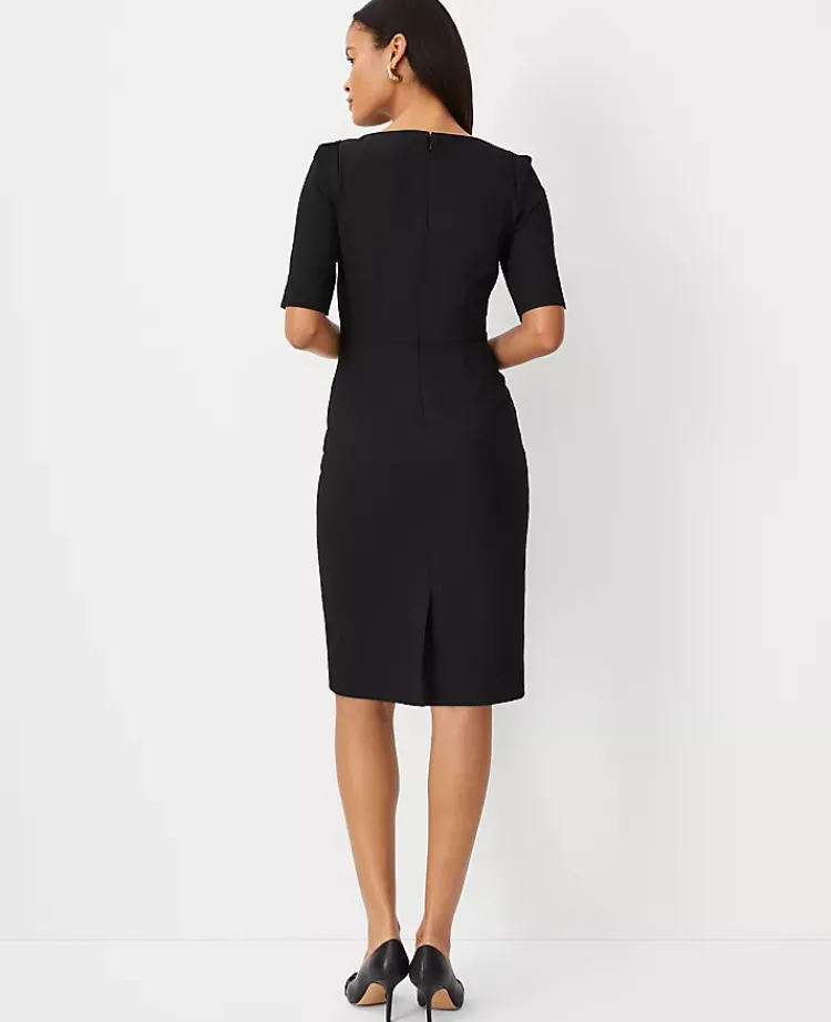Ann Taylor Petite Dresses|Petite Suits|The Petite Elbow Sleeve Square Neck Dress In Seasonless Stretch – Curvy Fit Core Black