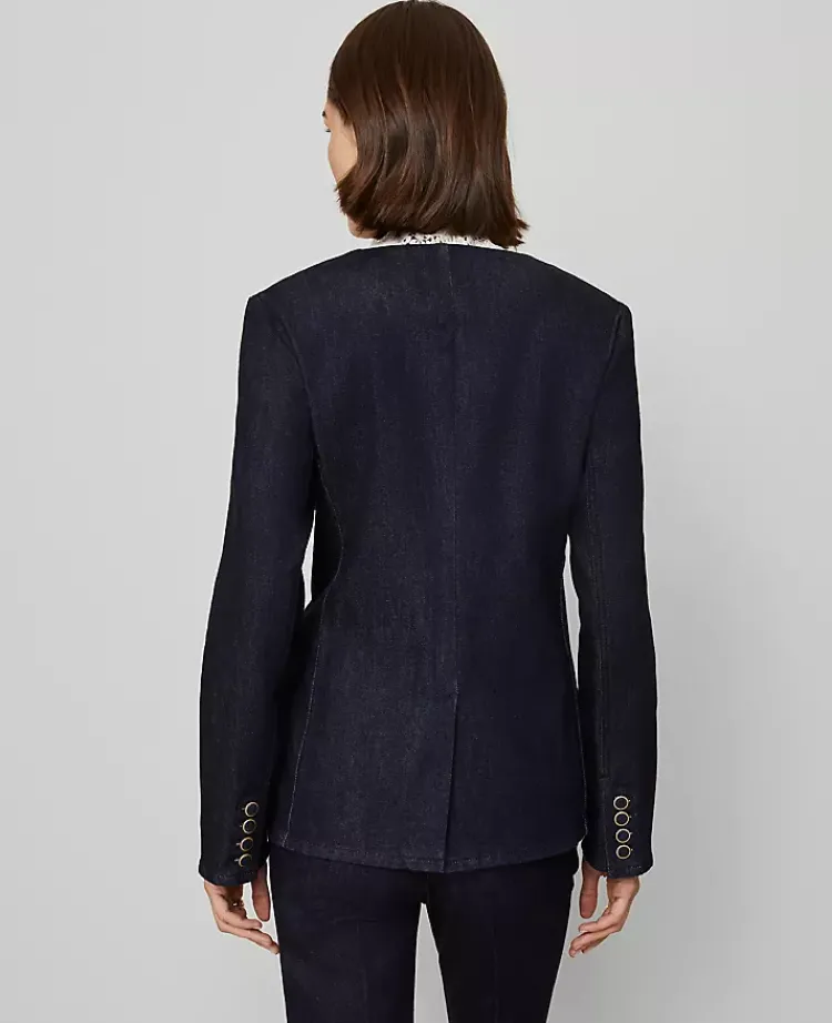Ann Taylor Petite Jackets And Blazers|Jackets And Blazers|Petite Denim Split Hem Jacket Classic Rinse Wash
