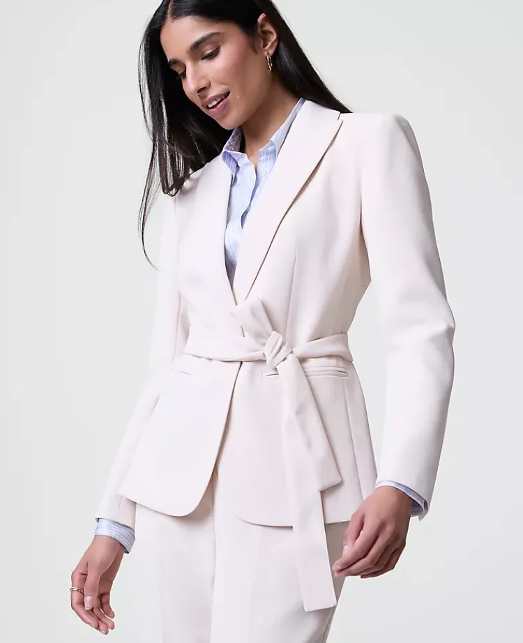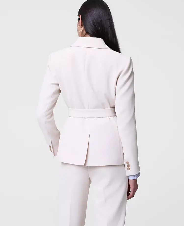 Ann Taylor Petite Jackets And Blazers|Petite Suits|The Petite Belted Blazer In Fluid Crepe Ivory Whisper
