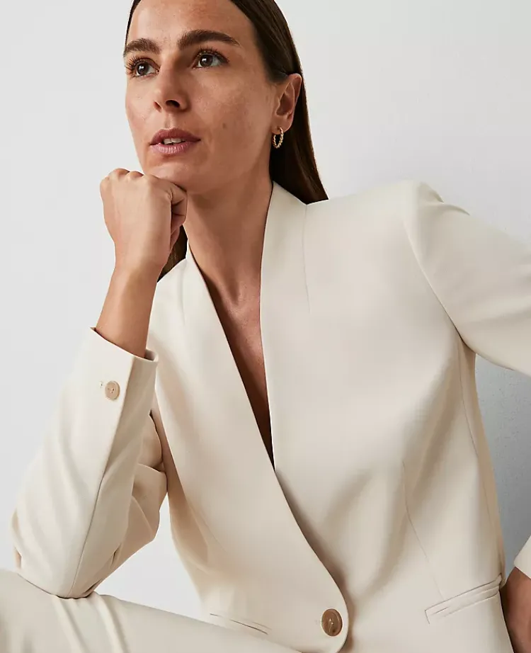 Ann Taylor Petite Jackets And Blazers|Petite Suits|The Petite Long Collarless Blazer In Fluid Crepe Ivory Whisper
