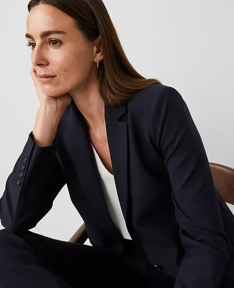 Ann Taylor Petite Jackets And Blazers|Petite Suits|The Petite Notched One Button Blazer In Seasonless Stretch Deep Navy Sky