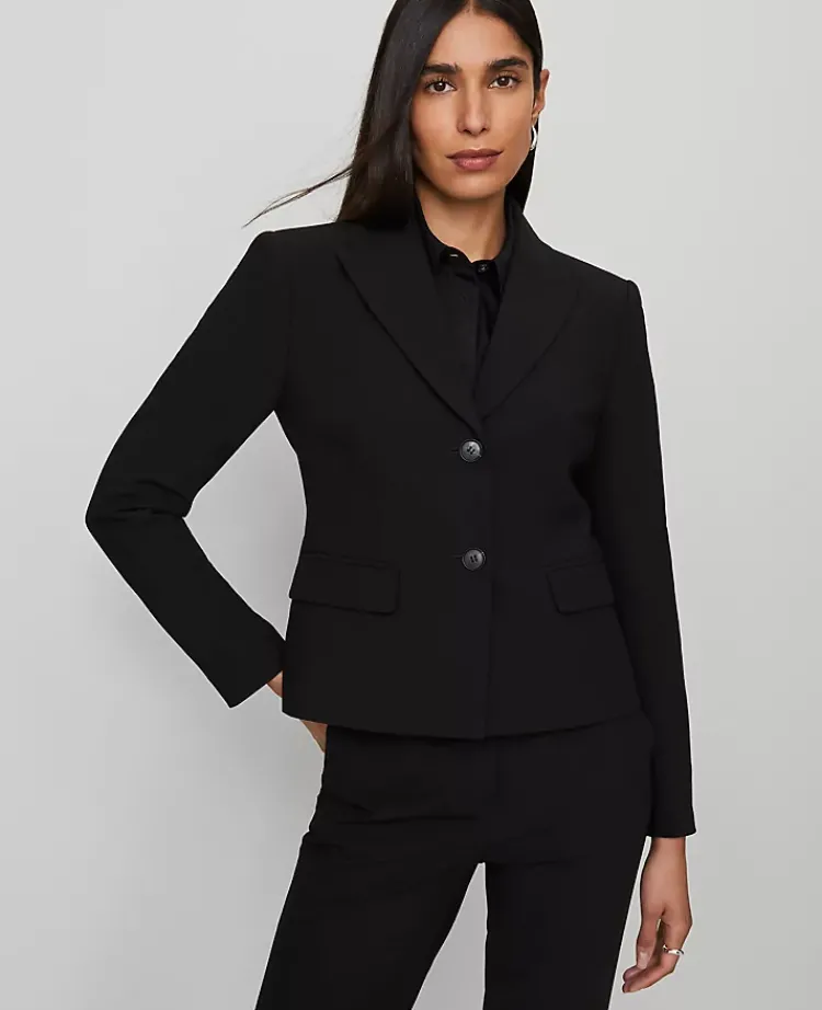 Ann Taylor Petite Jackets And Blazers|Petite Suits|The Petite Shorter Two Button Blazer In Bi-Stretch Black