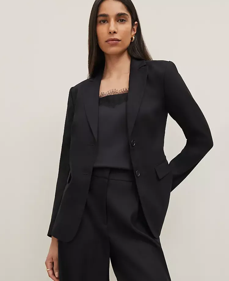Ann Taylor Petite Jackets And Blazers|The Petite Notched Two Button Fitted Blazer In Linen Blend Black