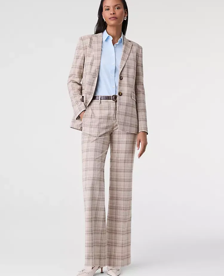 Ann Taylor Petite Pants|Petite Suits|The Petite Jayne Trouser In Plaid Tan/Navy Plaid