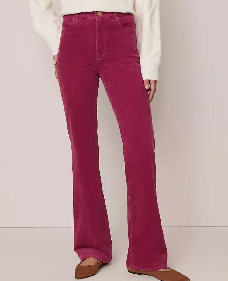 Discover Ann Taylor Weekend. Effortlessly polished pieces for wherever your plans take you. Made from soft corduroy, our high-rise, boot cut pants are a modern must-have. Front zip with button closure. Belt loops. Classic five-pocket styling.
