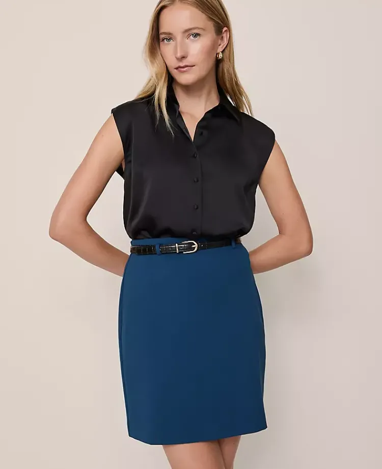 Ann Taylor Petite Skirts|Petite Ponte Belted A-Line Skirt Moonlit Backdrop