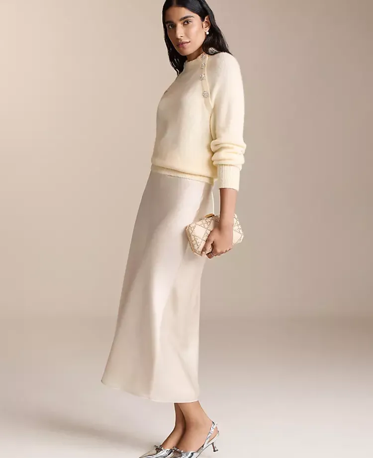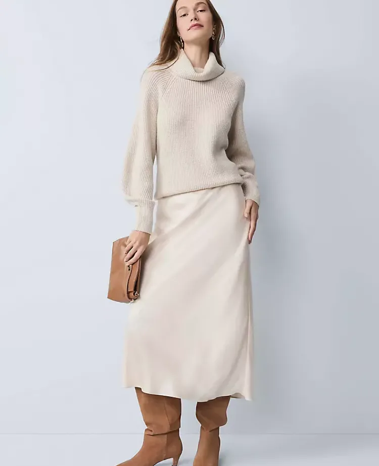 Ann Taylor Petite Skirts|Petite Satin Bias Midi Slip Skirt Feather