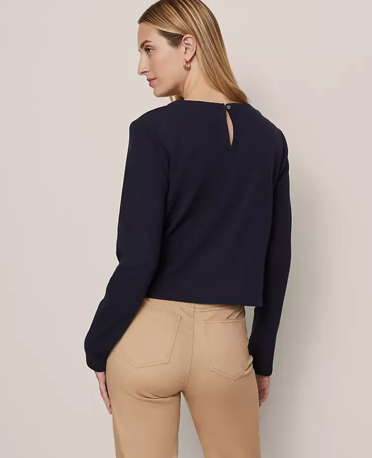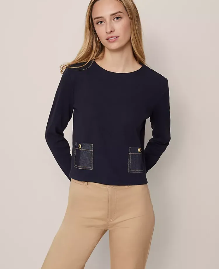 Discover Ann Taylor Weekend. Effortlessly polished pieces for wherever your plans take you. Denim patch pockets give this versatile style an elevated update. Crew neck. Long sleeves.