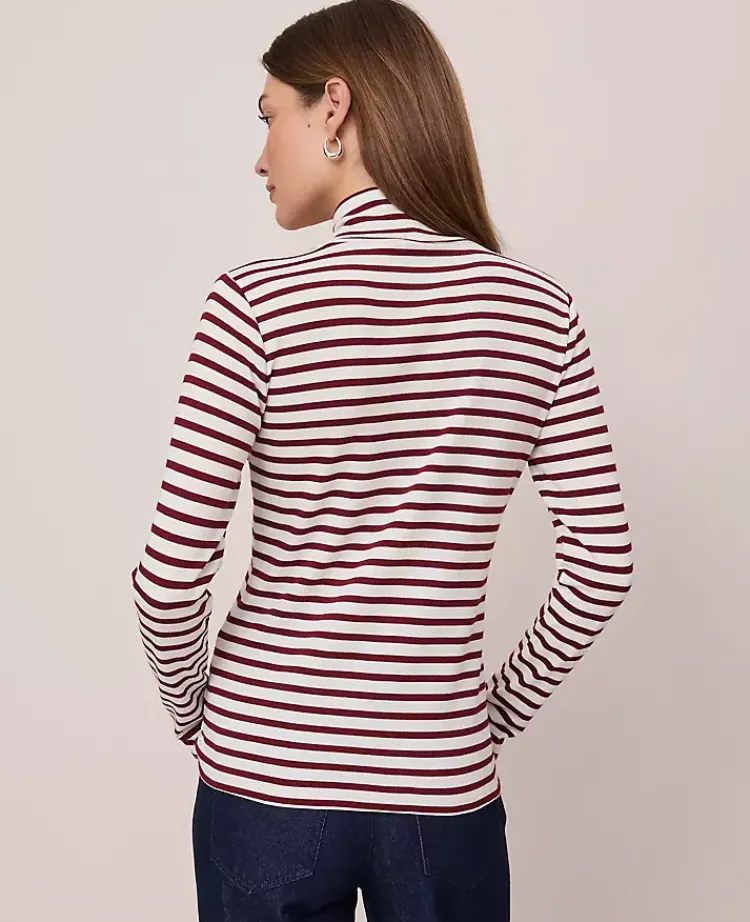 Ann Taylor Petite Weekend|Petite Weekend|Petite Weekend Collection Striped Turtleneck Top Cherry Pie
