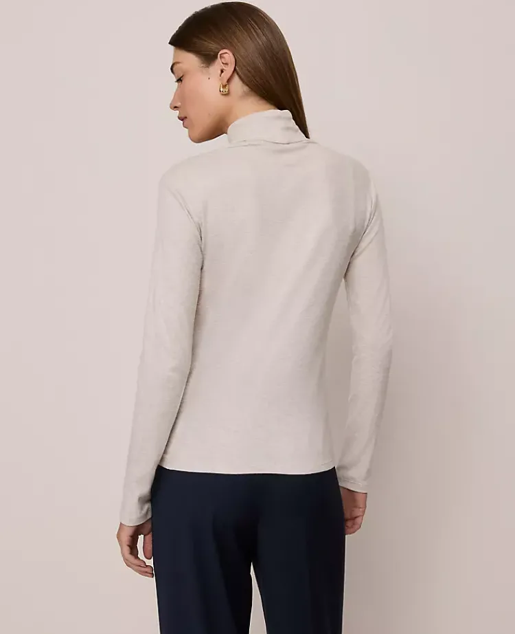 Ann Taylor Petite Weekend|Petite Weekend|Petite Weekend Collection Turtleneck Top Pale Sand Heather
