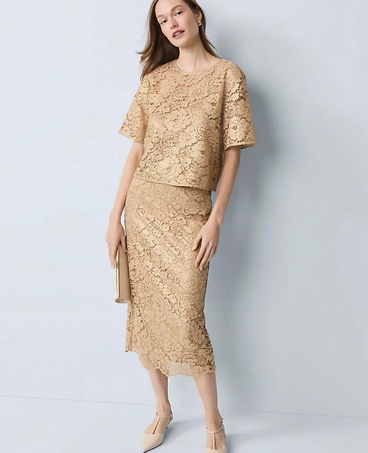 Ann Taylor Skirts|Lace Column Midi Skirt Gold Lace