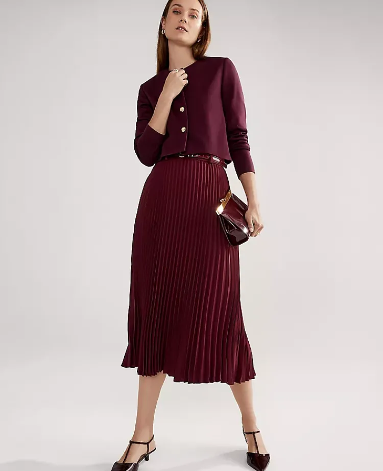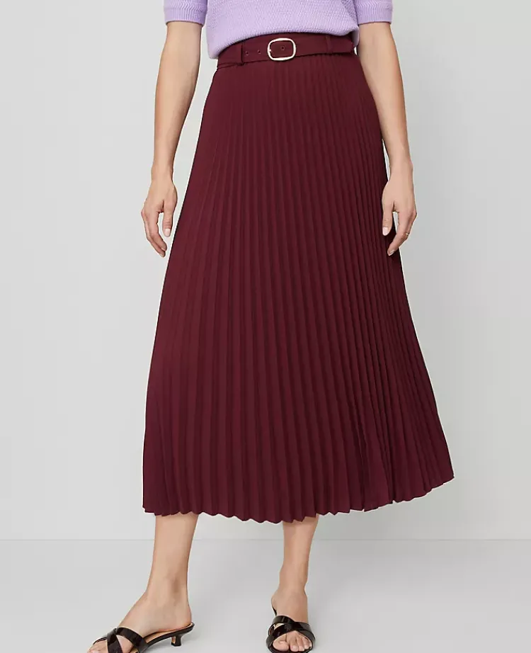 Ann Taylor Skirts|Petite Skirts|Petite Belted Pleated Midi Skirt Windsor Wine