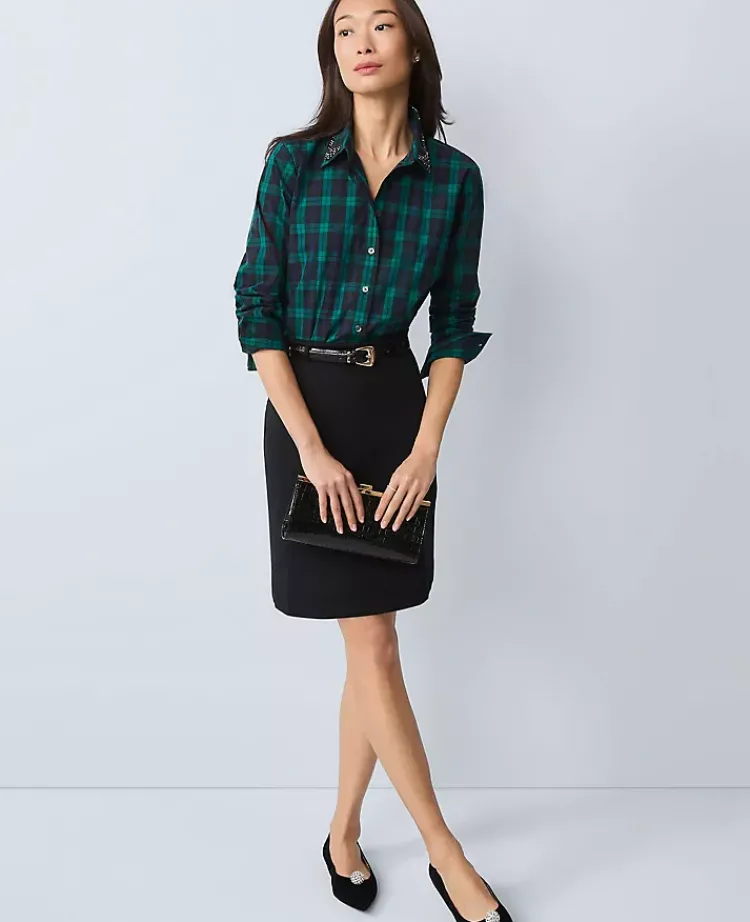 Ann Taylor Skirts|Ponte Belted A-Line Skirt Black