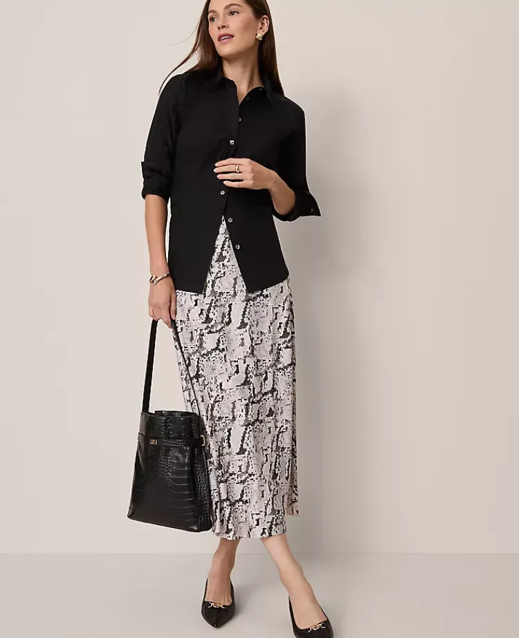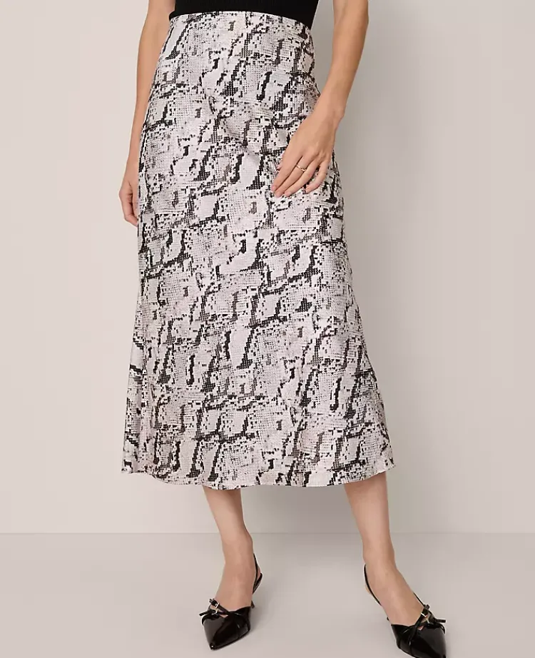 Ann Taylor Skirts|Snake Print Satin Bias Slip Skirt Winter White