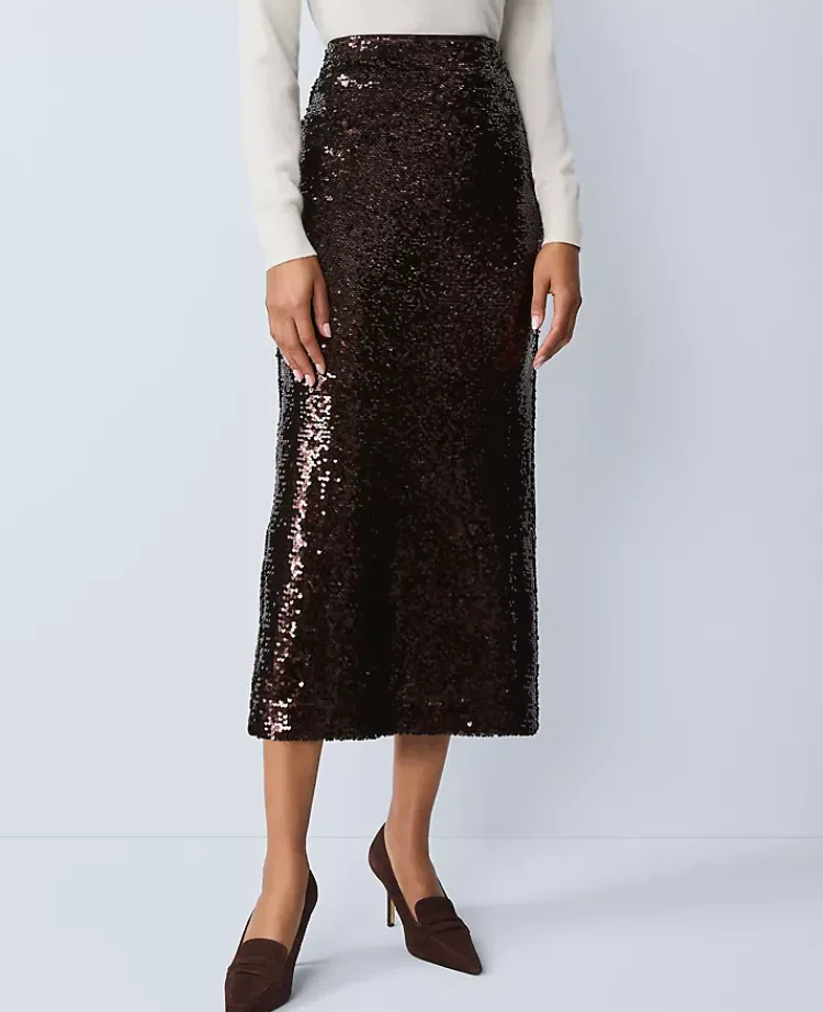 Ann Taylor Skirts|Studio Collection Sequin Pencil Skirt Pure Chocolate