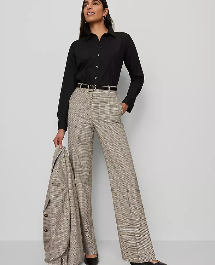 Ann Taylor Suits|Suits|The Flare Trouser In Plaid Copper/Cream Multi
