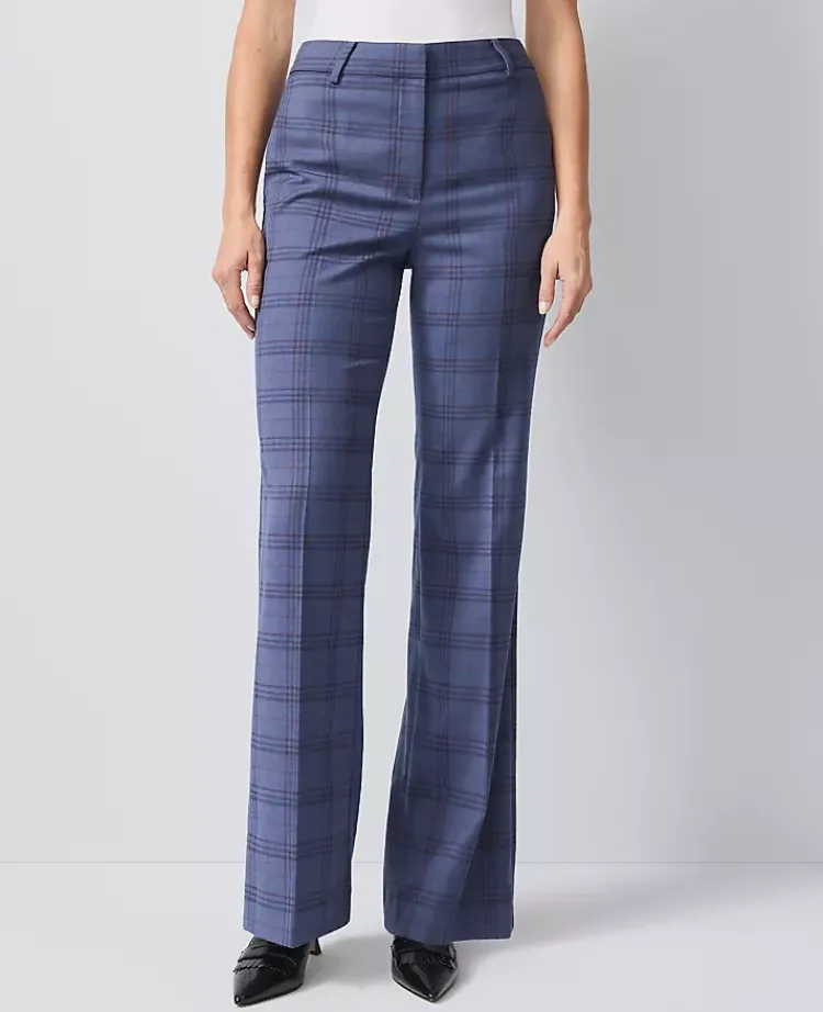 Ann Taylor Suits|Suits|The Flare Trouser In Plaid – Curvy Fit Blue Plaid Multi
