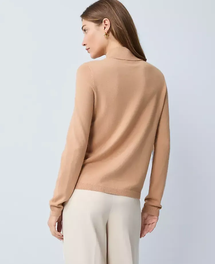 Ann Taylor Sweaters|All Sweaters|Button Mock Neck Sweater Cafe Au Lait
