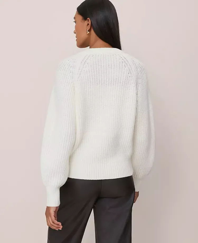 Ann Taylor Sweaters|All Sweaters|Chunky Ribbed Crew Neck Cardigan Winter White